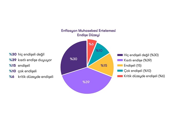 Enflasyon muhasebesi ertelemesinin reel kazançlar yerine nominal kârlar üzerinden vergilendirmeye yol açacağı göz önüne alındığında, katılımcıların büyük çoğunluğu (%69) hiç endişe duymadığını ya da yalnızca kısıtlı düzeyde endişe duyduğunu ifade etti. Buna karşın %31’lik bir kesim orta-üst düzeyde endişeli olduğunu belirtiyor.