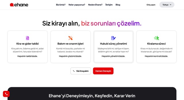Ehane, kira tahsilatı, gider takibi, bakım onarım işleri ve hukuki süreçler dahil olmak üzere, ev sahiplerinin yükünü hafifleten birçok hizmeti tek platformda sunuyor. Sözleşme hazırlama, bildirim gönderme, tahliye işlemleri ve evrak yönetimi gibi zaman alan adımlar da Ehane’nin uzman ekibi ve çözüm ortakları tarafından yürütülüyor.